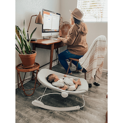 convertible from lay-back lounger to active bouncer to fixed upright baby seat in seconds.