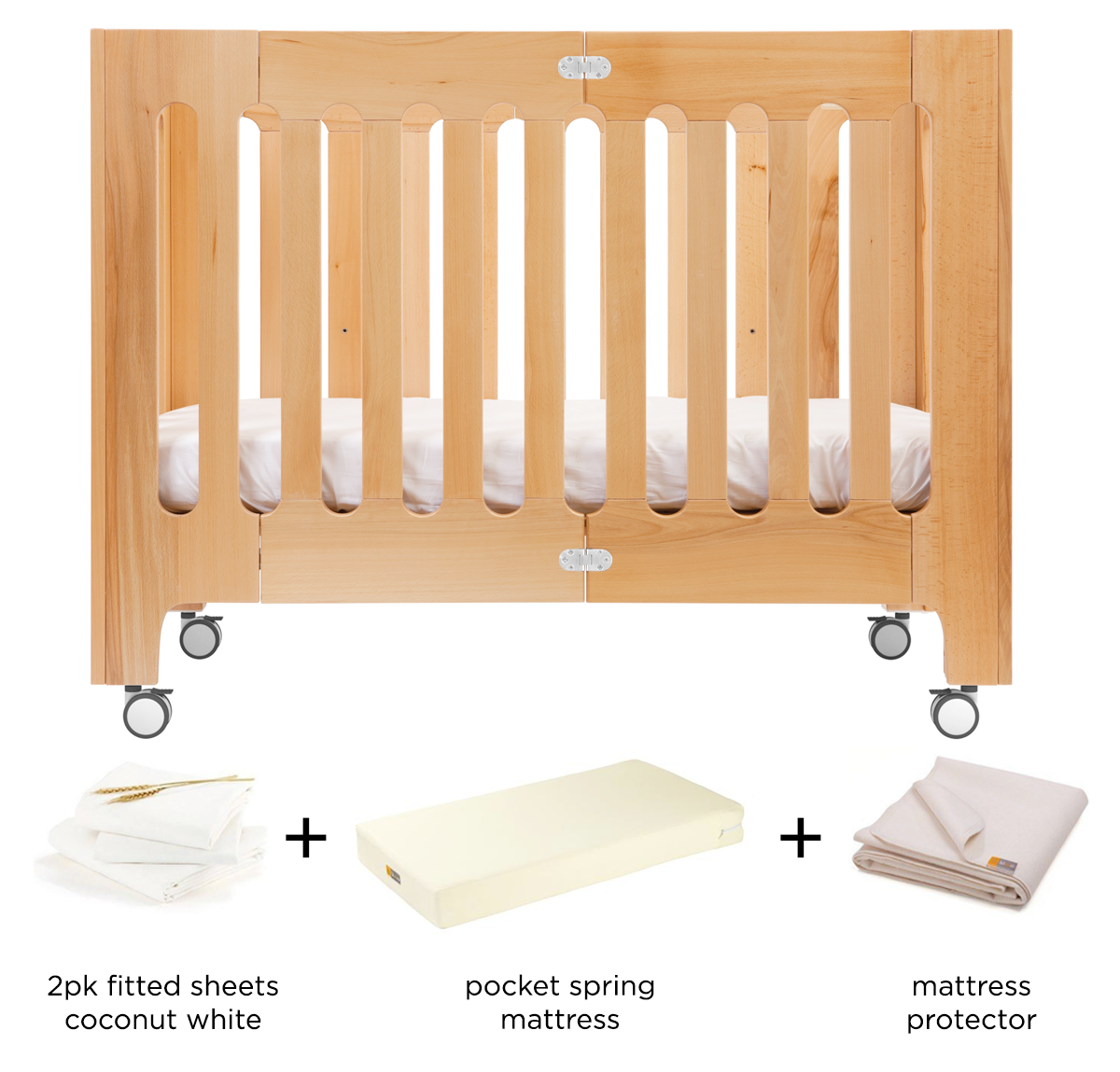 the alma papa: small enough for urban spaces (every inch counts), large enough to easily get kids through the cot-bed stage. and everything you need is one click away. our bundle includes one solid-wood papa cot, a breathable mattress, two organic white fitted sheets, and a mattress protector.